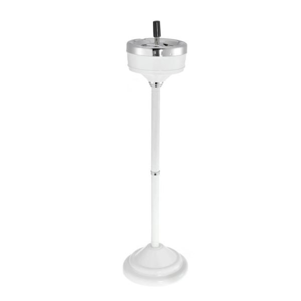 La conception visuelle de ce cendrier repose sur une géométrie épurée, avec une finition blanche lumineuse mise en valeur par des éléments chromés ou argentés. Une fine bague métallique vient souligner la jonction du pied, un détail de finition qui atteste de la qualité de l’assemblage. Disponible également en finitions noir et rouge, il offre des options de personnalisation pour une cohérence visuelle parfaite. Il représente une solution rationnelle et pérenne pour préserver la propreté et l’esthétique de vos terrasses, jardins ou zones dédiées.